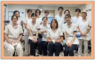 急性期病床と地域包括ケア病床の混合病棟です。患者さん一人ひとりの状態に応じた柔軟で継続的な医療・看護・リハビリを提供しています。その時その瞬間の看護を大切にし、それぞれの場面で専門性が発揮できるように日々努力しています。